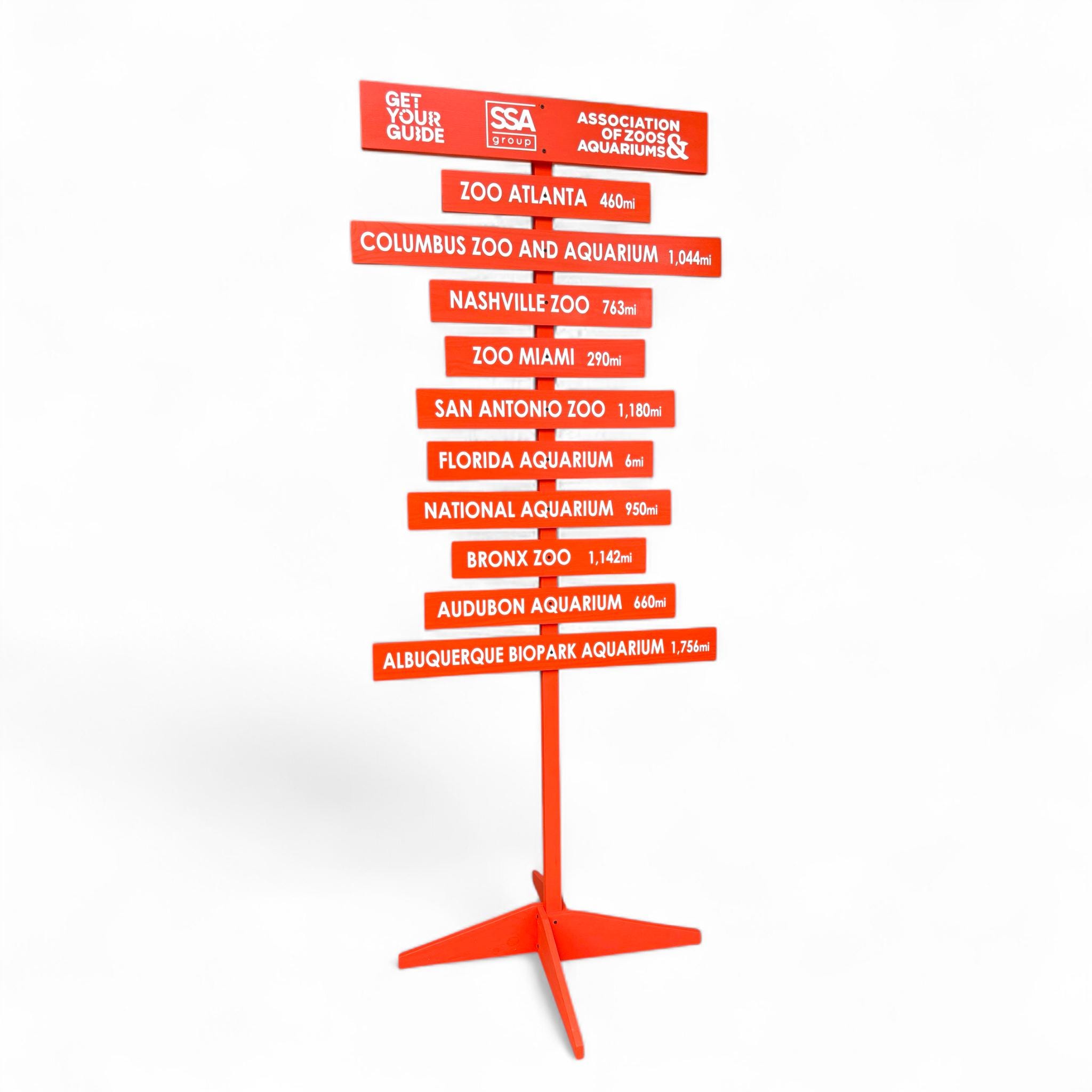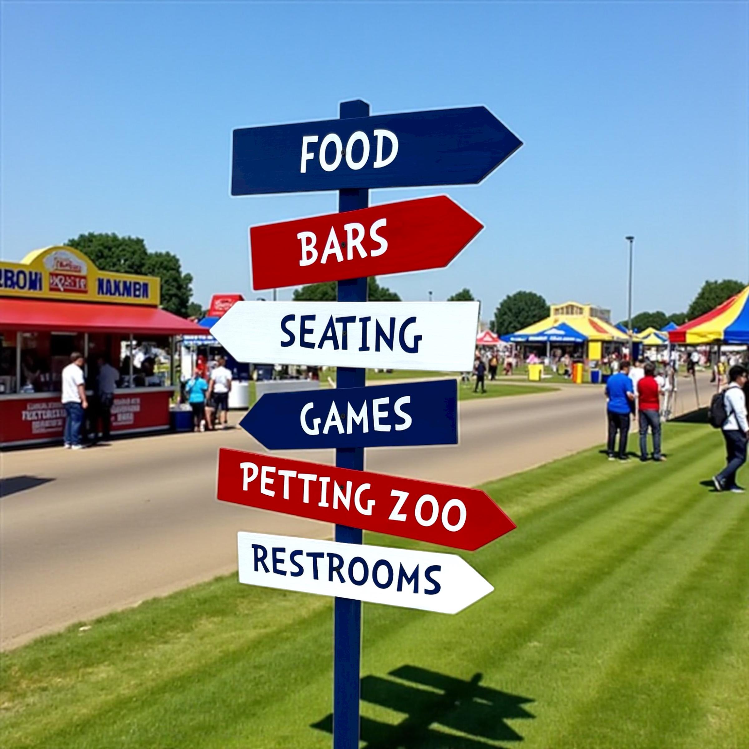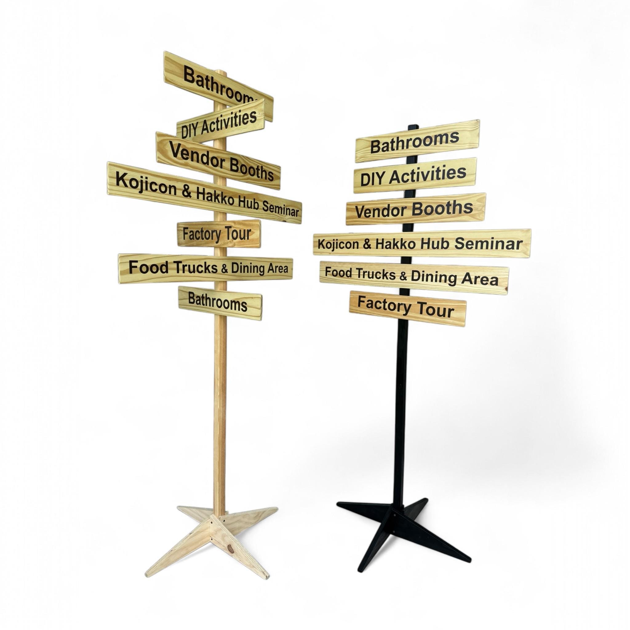 Our event directional sign post wayfinding arrows are the perfect addition to Festivals, Trade shows, events, conferences or city festivals. These Party personalized direction arrows signs not only guide guests but also add flair and sophistication to any setting.