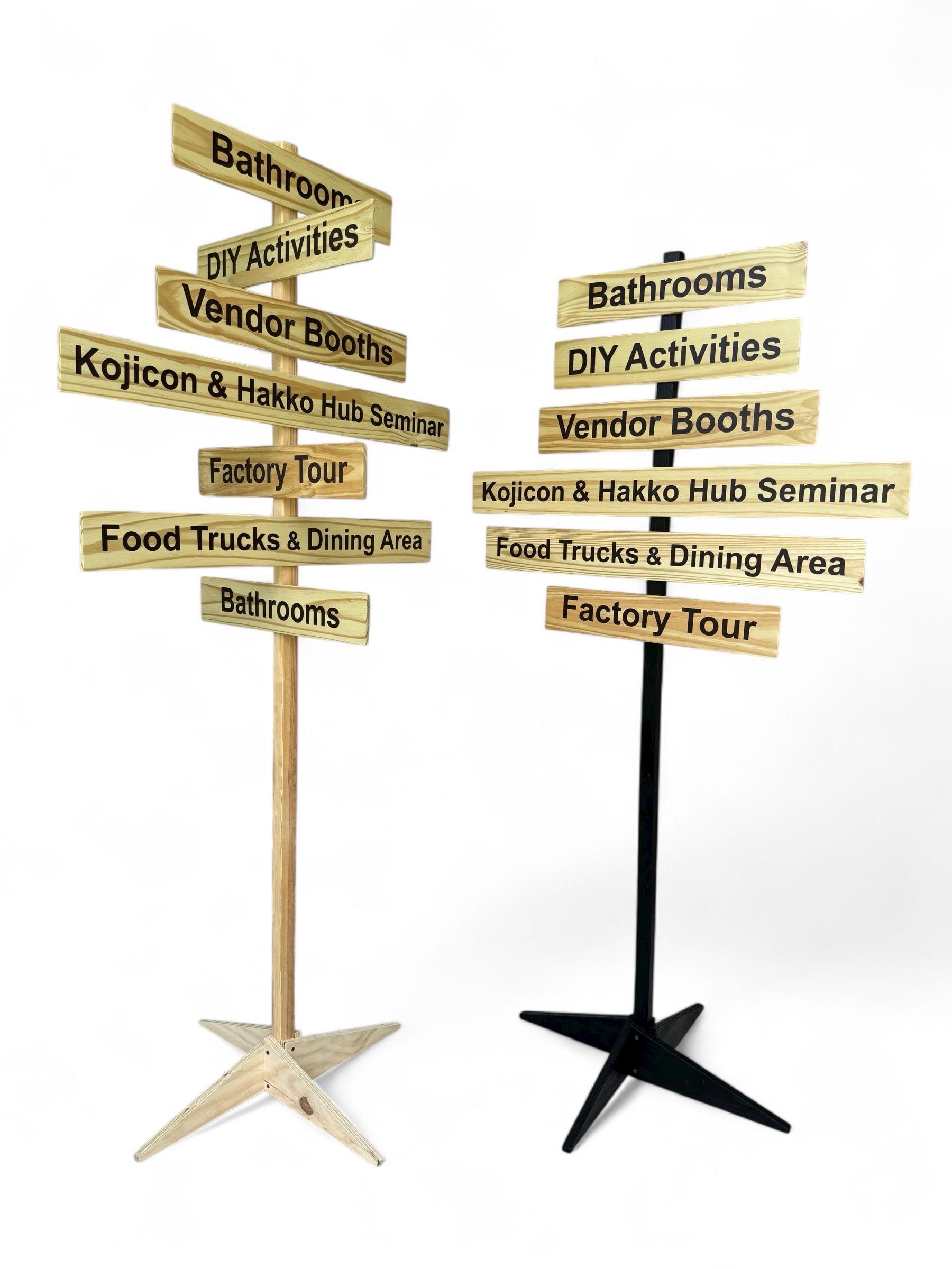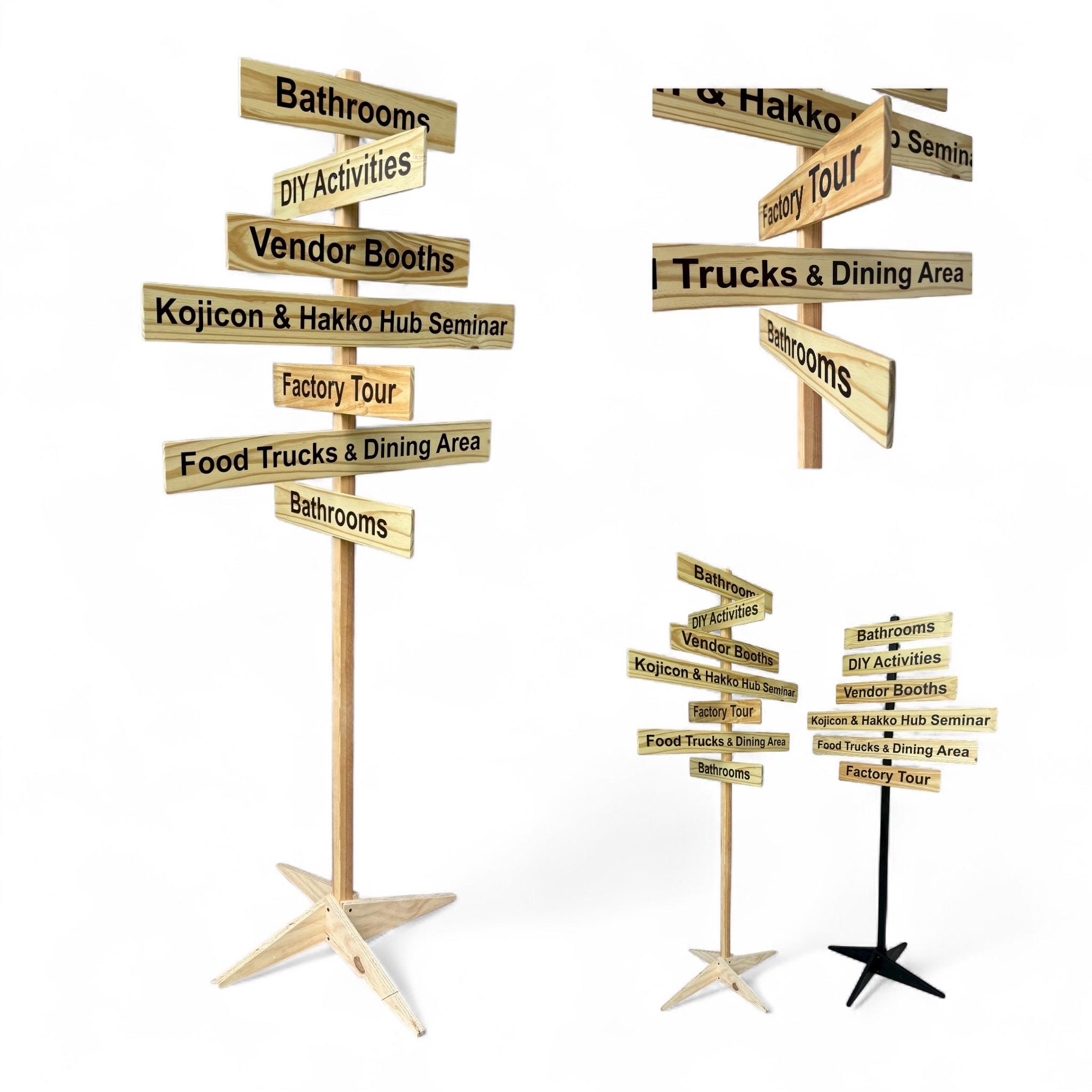 Our Personalized directional sign free standing post wayfinding arrows are the perfect addition to Trade shows, events, conferences or city festivals. These Party personalized direction arrows signs not only guide guests to the Bathrooms, Vendor Booths, DIY Activities, Food Tracks, etc. but also add flair and sophistication to any settings.