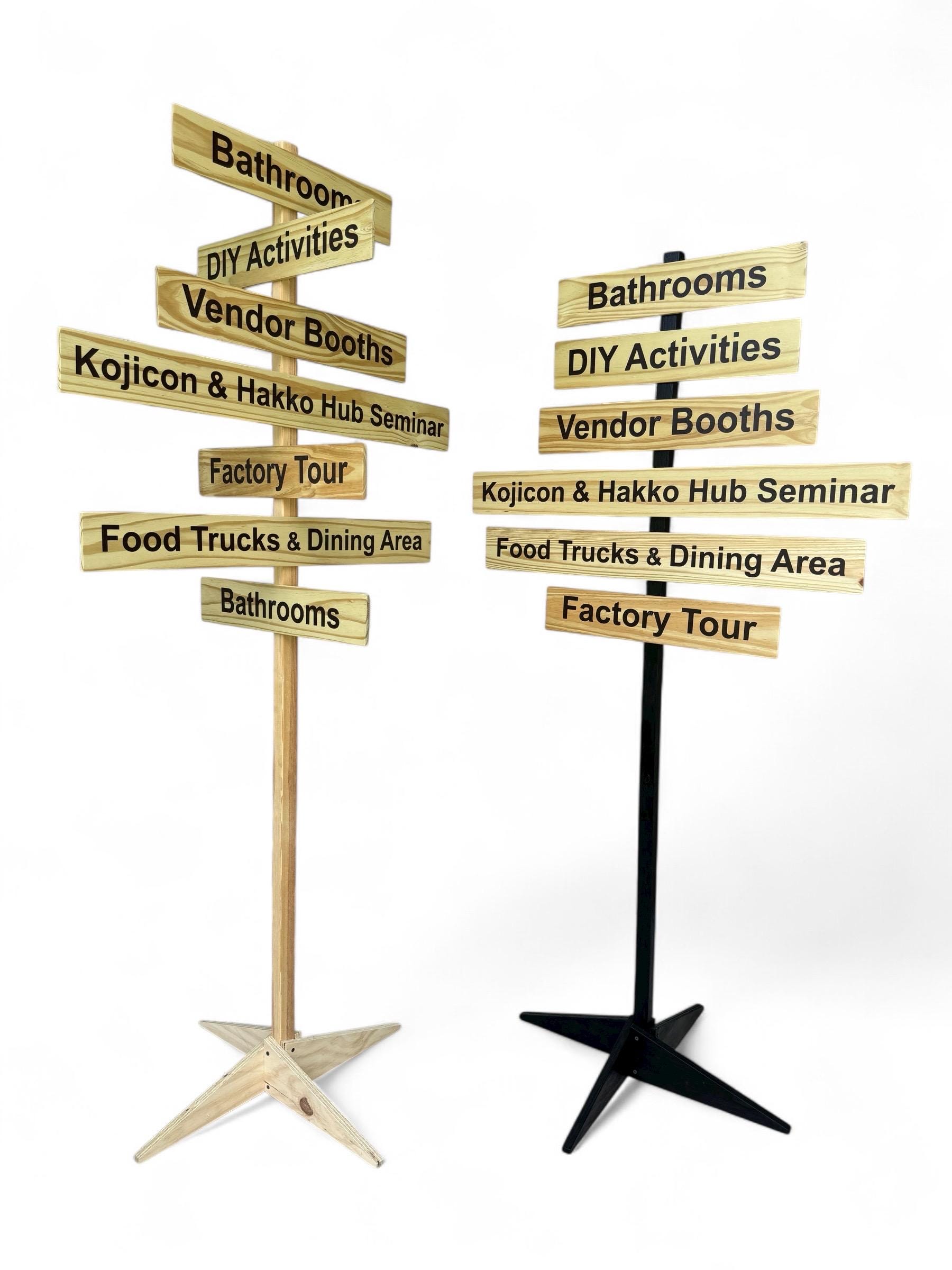 Personalized directional sign free standing post wayfinding arrows are the perfect addition to Trade shows, events, conferences or city festivals. These Party personalized direction arrows signs not only guide guests to the Bathrooms, Vendor Booths, DIY Activities, Food Tracks, etc. but also add flair and sophistication to any settings.