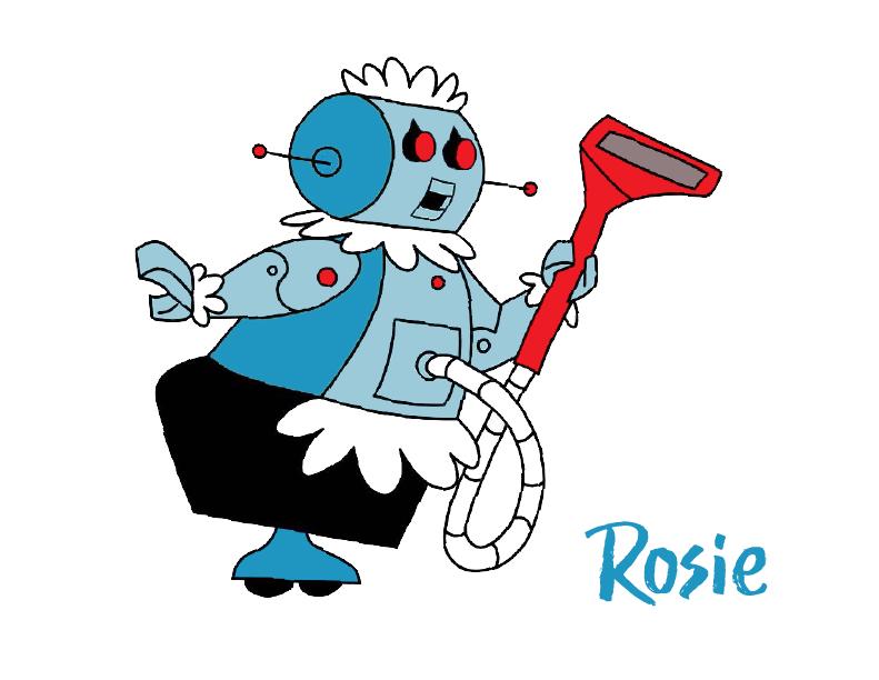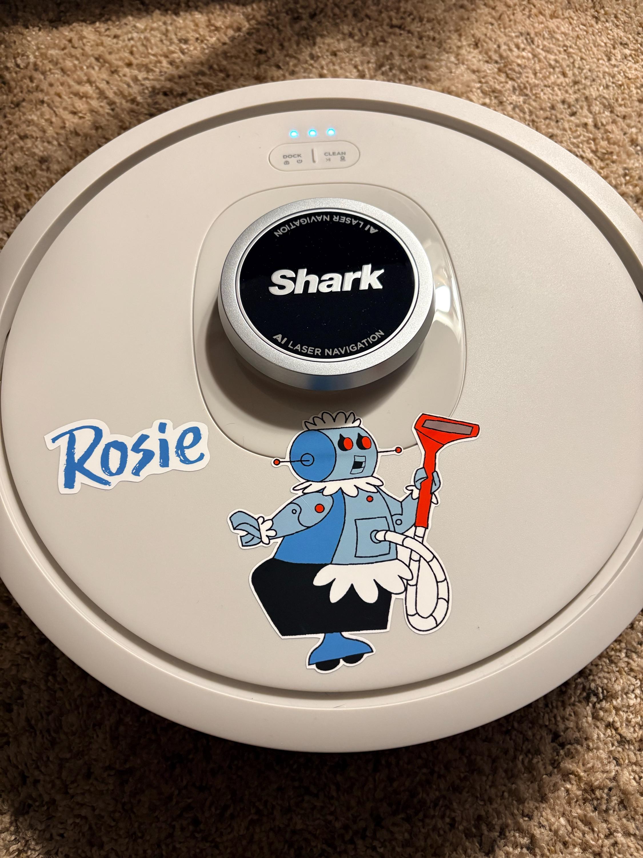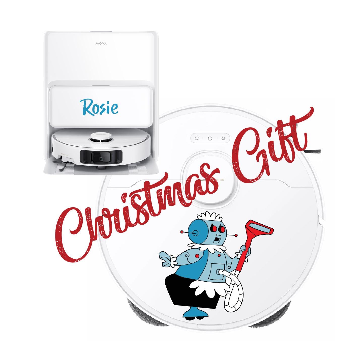 Rosie robot vacuum sticker for your loved ones. Name your little helper with any custom funny name in Rosie style.