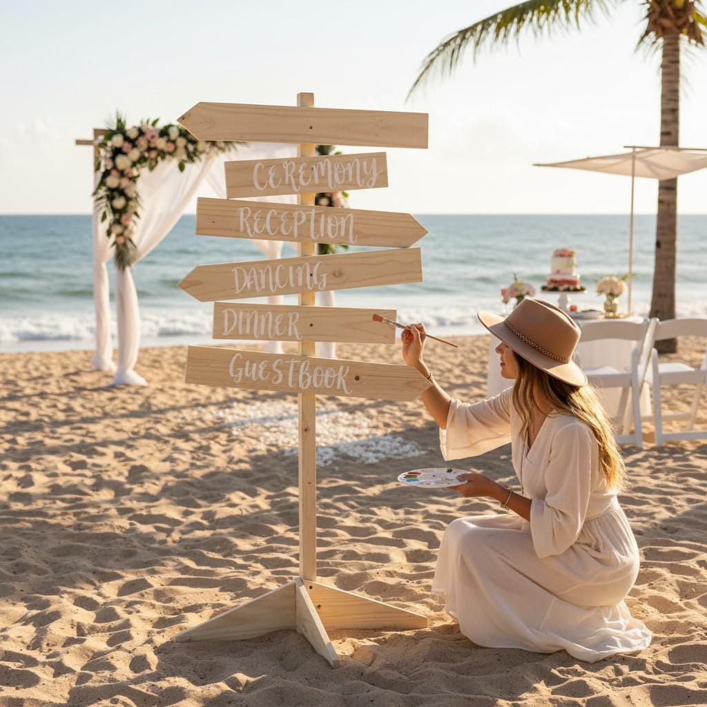Looking for a customizable wedding directional sign post?