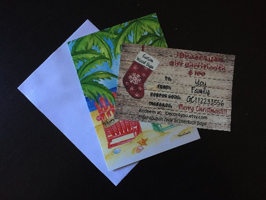 Gift Card for iDecor4you shop Business Gift Certificate for Custom Wood sign from iDecor4you. Is there a special person in your life that is a little hard to shop for? A gift certificate is the perfect solution, and a gift certificate for art is even better. This gift certificate can be used to design a one of a kind custom piece of art, or to purchase items from our collection.